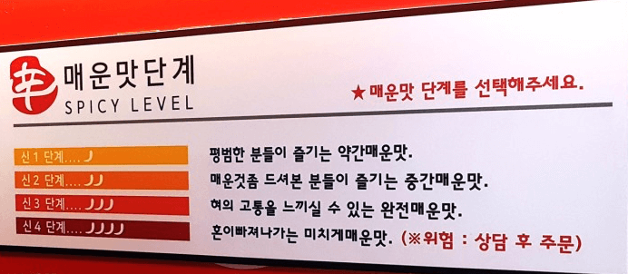 Some restaurants even turn it into a spicy challenge,daring you to conquer the hellish spicy! The level marked with 🌶🌶🌶🌶 is described as