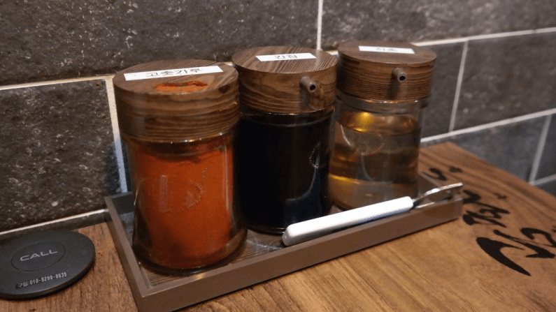 3 bottles on the table – pepper powder, soy sauce, and vinegar. Everyone has a unique way to customizing to enhance the flavors, so experiment!